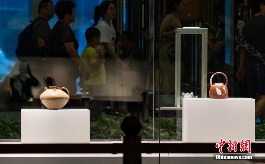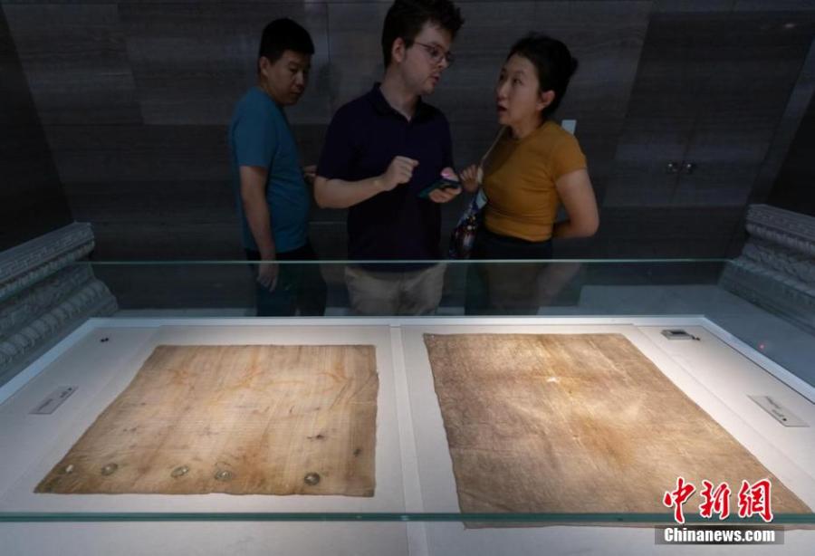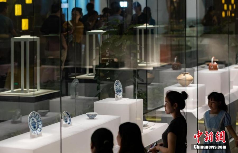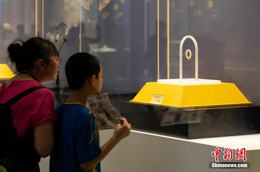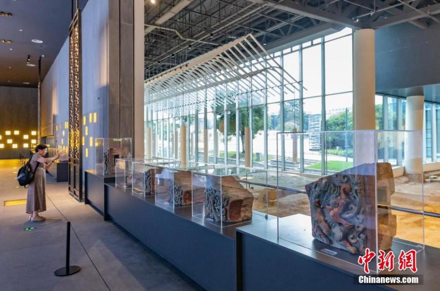 Visitors view the exhibits in a museum at the Grand Baoen Temple Heritage and Scenic Area in Nanjing, east China's Jiangsu Province, Aug. 14, 2023. (Photo: China News Service/Yang Bo)
