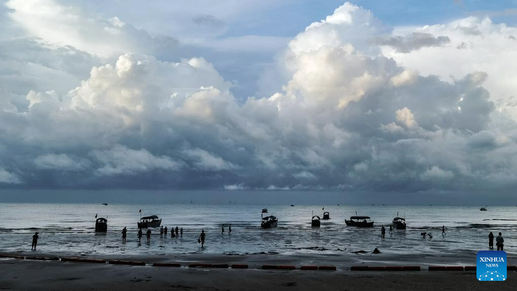 Fishing boats are seen at Jintan beach in Dongxing, south China's Guangxi Zhuang Autonomous Region, Aug. 15, 2023. Jintan beach, which is located in the southern part of the Wanwei Island, has a coastline of 15 kilometers and is named after its golden sand color. (Xinhua/Fei Maohua)