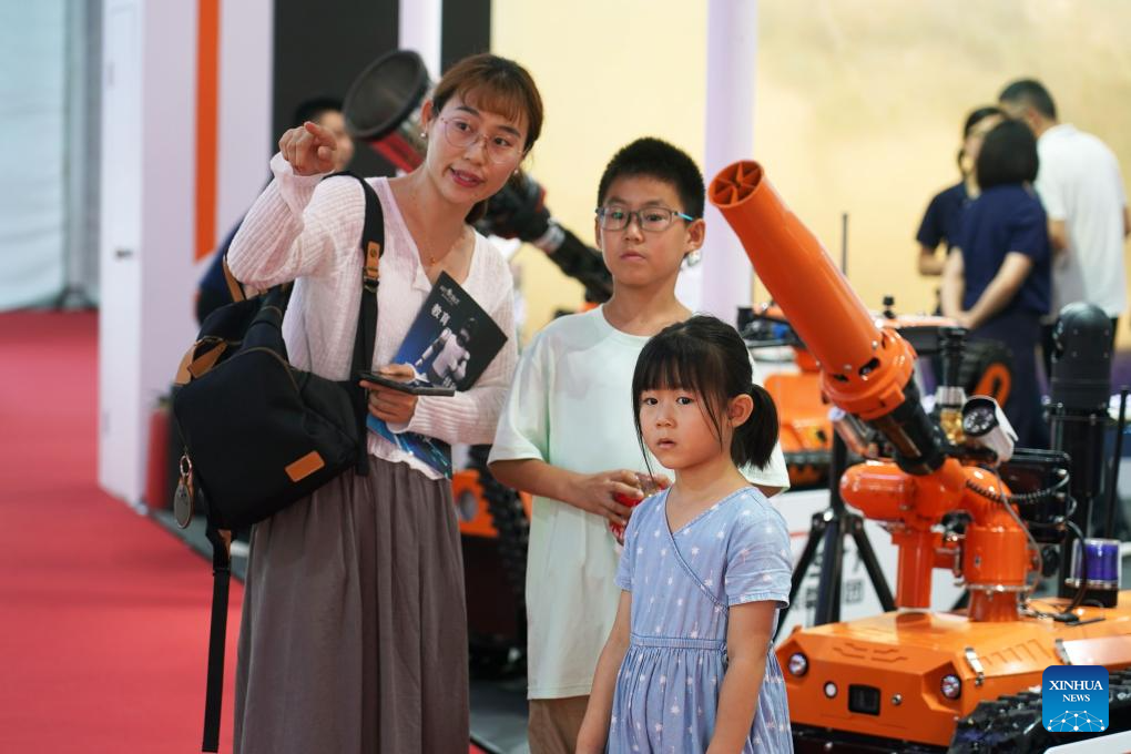 Children visit the World Robot Conference 2023 in Beijing, capital of China, Aug. 16, 2023. The World Robot Conference 2023 opened here Wednesday, showcasing cutting-edge achievements and the latest robot industry exhibits. (Xinhua/Xu Jiayi)