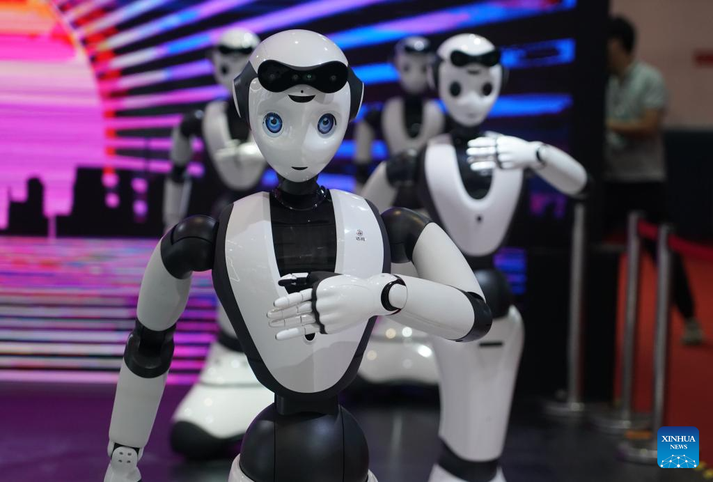 Humanoid robots perform at the World Robot Conference 2023 in Beijing, capital of China, Aug. 16, 2023. The World Robot Conference 2023 opened here Wednesday, showcasing cutting-edge achievements and the latest robot industry exhibits. (Xinhua/Wang Yuguo)