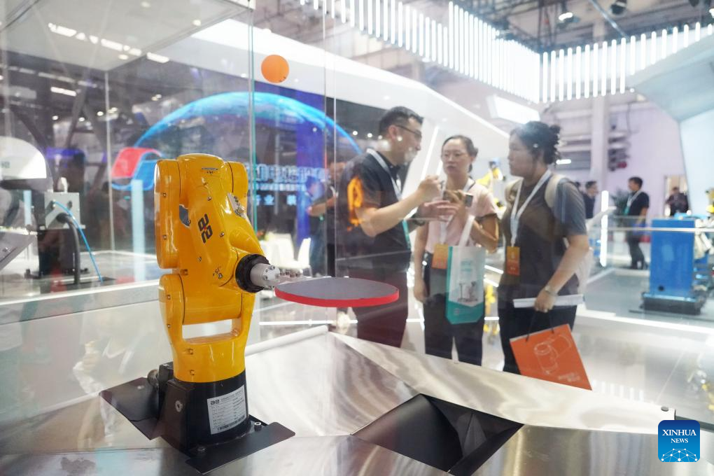 A manufacture robot is pictured at the World Robot Conference 2023 in Beijing, capital of China, Aug. 16, 2023. The World Robot Conference 2023 opened here Wednesday, showcasing cutting-edge achievements and the latest robot industry exhibits. (Xinhua/Xu Jiayi)