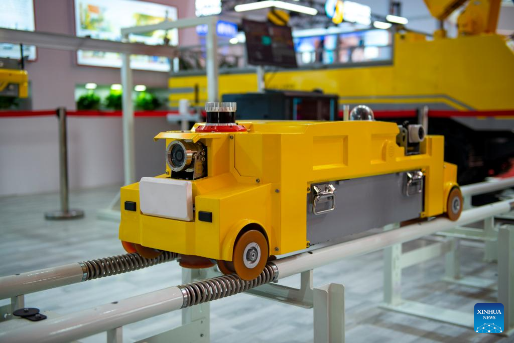A working face patrol robot is pictured at the World Robot Conference 2023 in Beijing, capital of China, Aug. 16, 2023. The World Robot Conference 2023 opened here Wednesday, showcasing cutting-edge achievements and the latest robot industry exhibits. (Xinhua/Xu Jiayi)