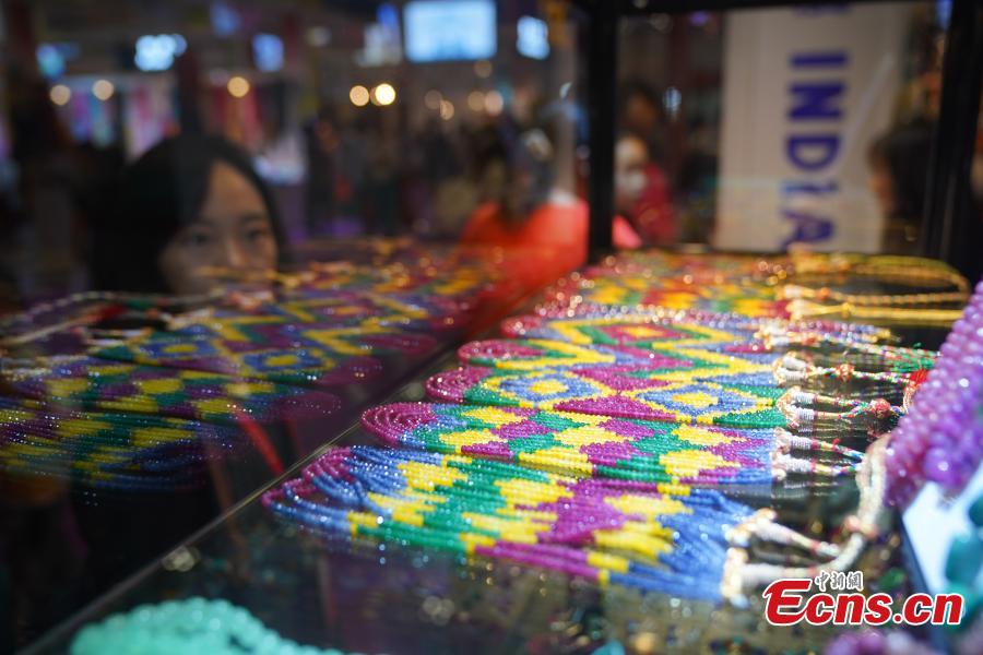 Products from India are displayed at the seventh China-South Asia Expo in Kunming, southwest China's Yunnan Province, Aug. 16, 2023. (Photo: China News Service/Liu Ranyang)