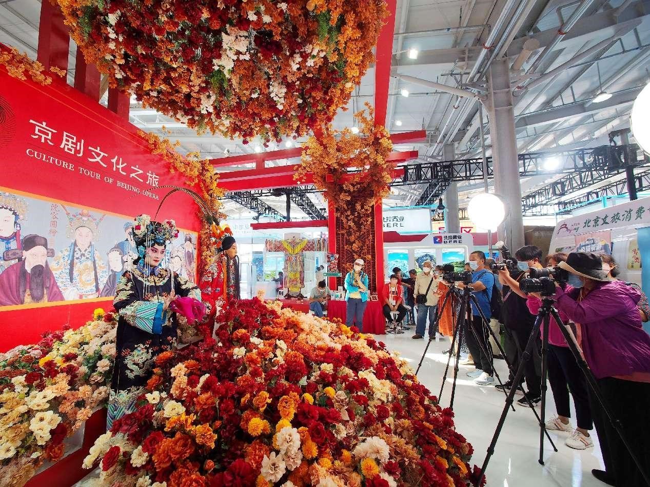 Visitors watch a Peking opera show at the cultural and tourism services exhibition hall of the 2022 China International Fair for Trade in Services (CIFTIS) at Shougang Park in Beijing, on Sept. 5, 2022. (People's Daily Online/Du Jianpo)