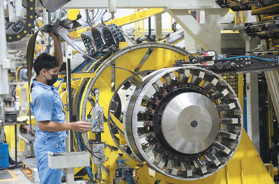 Photo shows Thai employees working on the automotive tire production line at General Rubber (Thailand) Co., Ltd. in the Thai-Chinese Rayong industrial zone, which is among the first batch of Chinese overseas economic cooperation zones and a key example of the Belt and Road industrial capacity cooperation. (People's Daily/Sun Guangyong)