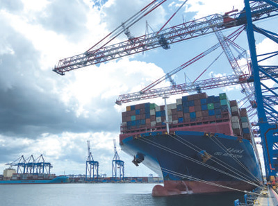 Photo shows the 200,000-tonne container ship Vessel CSCL ARCTIC OCEAN docked at the port of Gdansk in Poland. This cargo ship is mainly for maritime transportation between Asia and Europe. As one of the most significant ports in the Baltic Sea, the port of Gdansk has become a principal intersection for land and sea transportation along the Belt and Road. (People's Daily/Yu Limin)