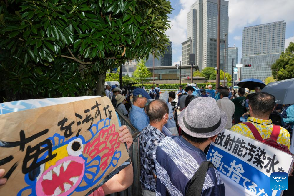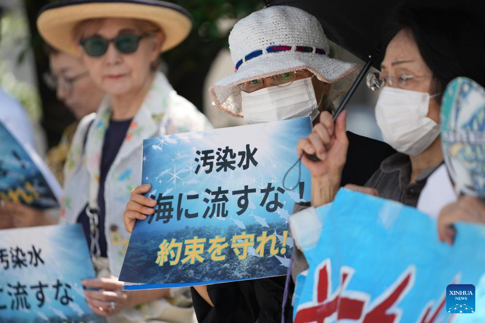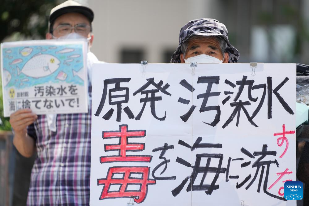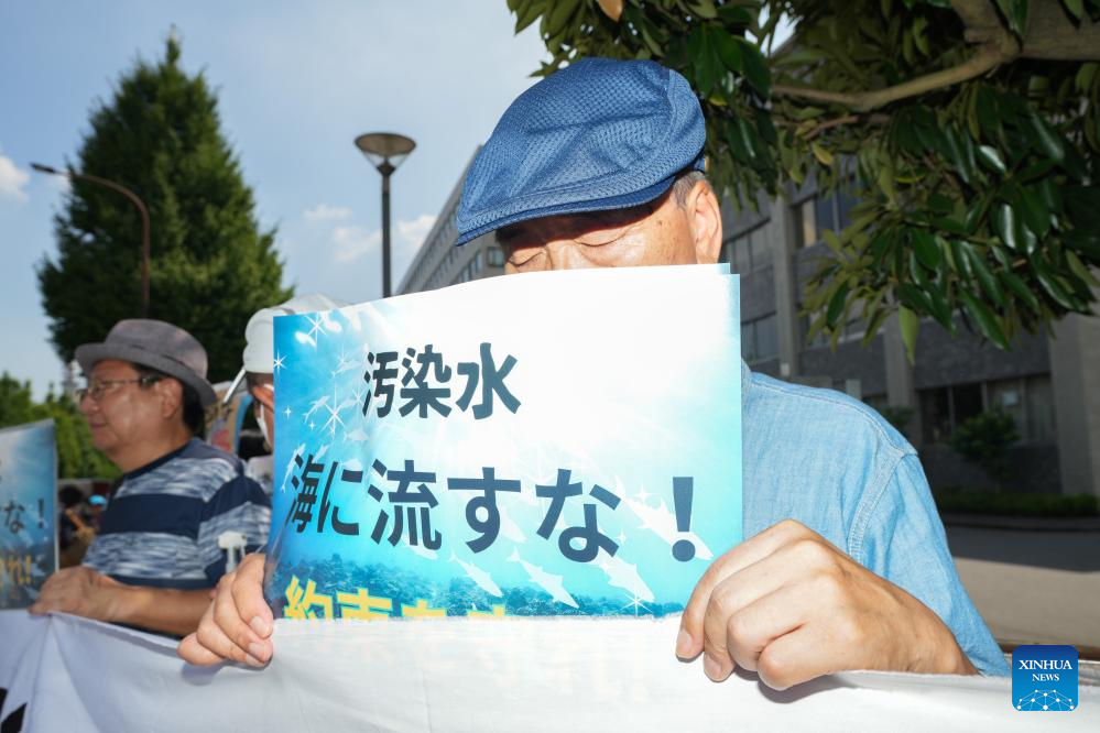 TOKYO, Aug. 18 (Xinhua) -- As the Japanese government approaches a decision on the specific date for the discharge of nuclear-contaminated water from the crippled Fukushima Daiichi Nuclear Power Plant into the ocean, hundreds of Japanese gathered in central Tokyo on Friday to rally against the discharge plan.