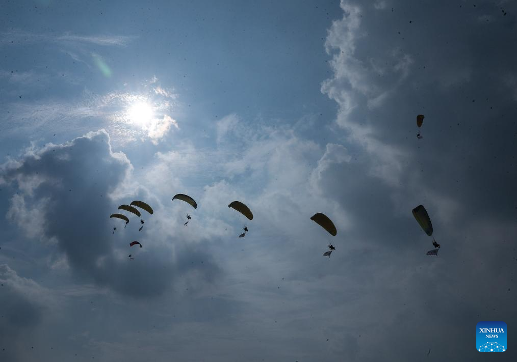 A paramotor performance is staged during the opening ceremony of the 10th Faku Flight International Conference in Shenyang, northeast China's Liaoning Province, Aug. 18, 2023. (Xinhua/Long Lei)