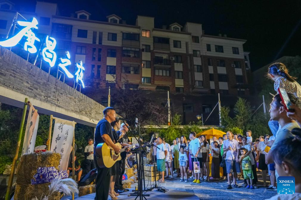Artists perform during a cultural festival in Changhua Town of Hangzhou City, east China's Zhejiang Province, Aug. 18, 2023. The cultural festival, which kicked off Friday in Changhua Town, aimed to boost the nighttime economy by presenting the culture of Tang (618-907) and Song (960-1279) Dynasties and promoting local snacks and scenic spots. (Xinhua/Xu Yu)