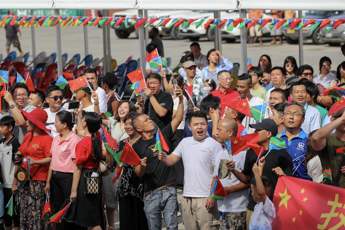 Local residents and Chinese overseas representatives welcome the hospital ship on Aug 19, 2023. [Photo by Xu Wei/For chinadaily.com.cn]