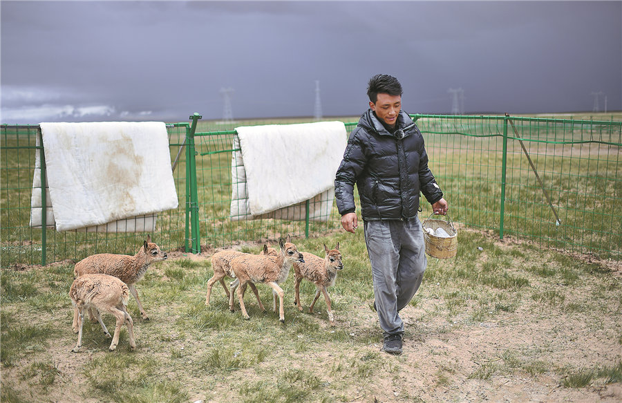 Several rescued Tibetan antelope calves enjoy a new and safe home at the Sonam Dargye protection station in Hoh Xil. ZHANG HONGXIANG/XINHUA