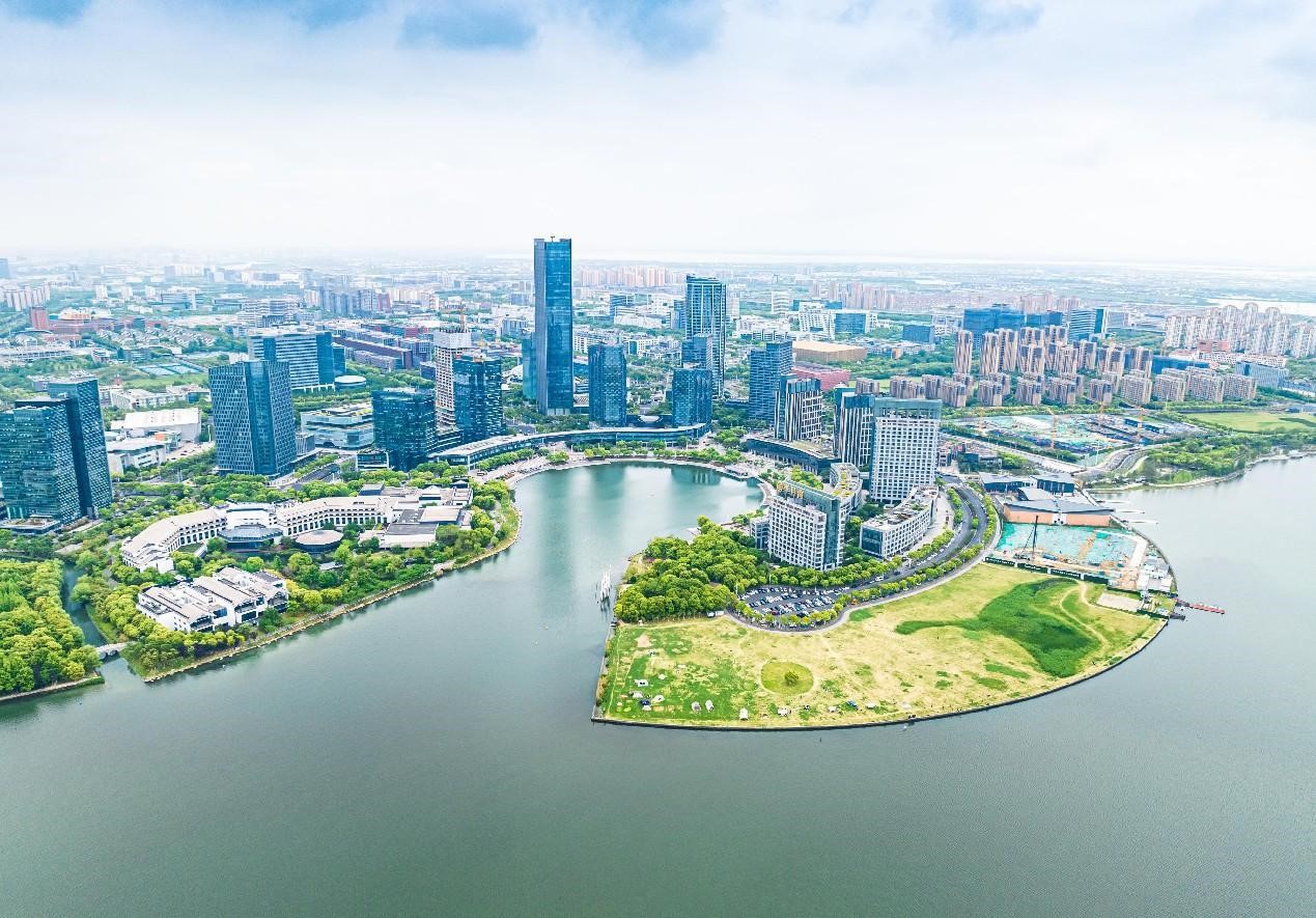 Photo shows an aerial view of the China (Jiangsu) Pilot Free Trade Zone in east China's Jiangsu province. (People's Daily Online/Zhang Feng)