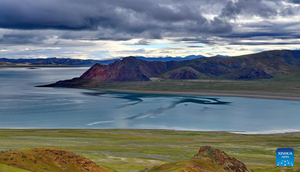 This photo taken on Aug. 19, 2023 shows a view of Zhari Namco Lake in Ali, southwest China's Tibet Autonomous Region. (Xinhua/Zhang Rufeng)