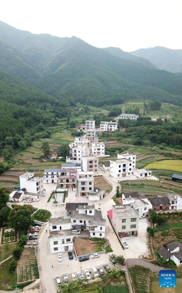 This aerial photo shows a view of Dayuan hamlet of Youyujing Village, Shuishi Township in Ningyuan County of central China's Hunan Province, Aug. 20, 2023. (Xinhua/Chen Zhenhai)