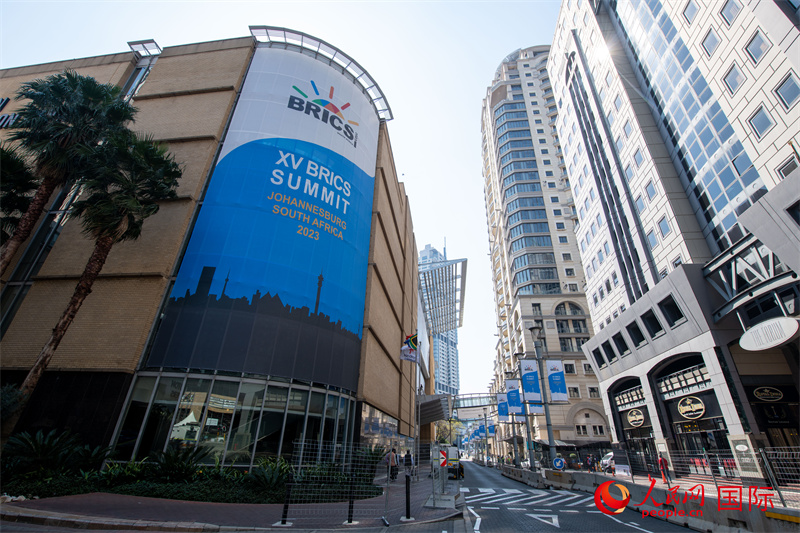 Photo taken on Aug. 21, 2023 shows the Sandton Convention Center, the venue for the 15th BRICS Summit, which is scheduled to run from Aug. 22 to 24 in Johannesburg, South Africa. Chinese President Xi Jinping arrived in South Africa on Monday to attend the 15th BRICS Summit and pay a state visit to South Africa. (People's Daily Online/Weng Qiyu)