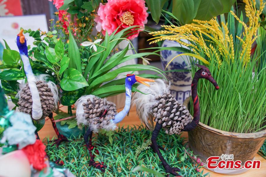Artworks are displayed during "Saiqiao Festival", a celebration of the Qixi Festival in Nanning, south China's Guangxi Zhuang Autonomous Region, Aug. 21, 2023. (Photo: China News Service/Chen Guanyan)
