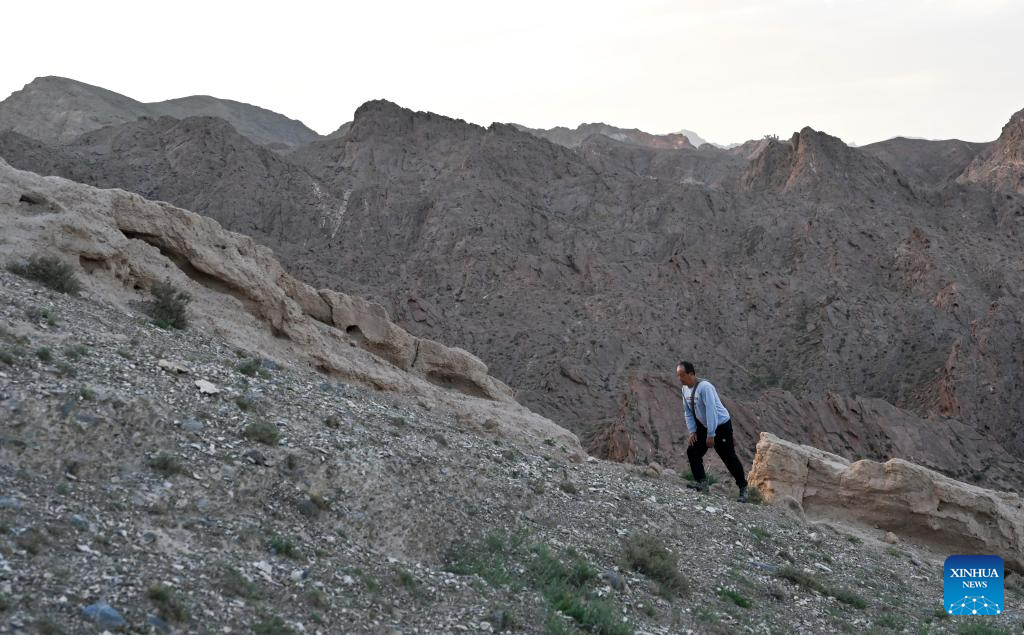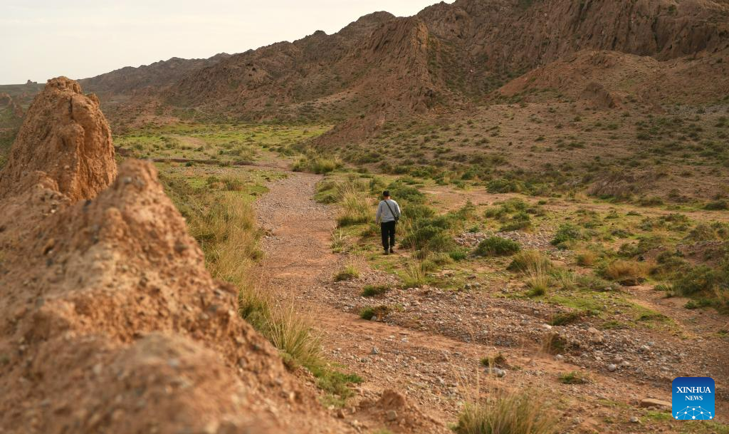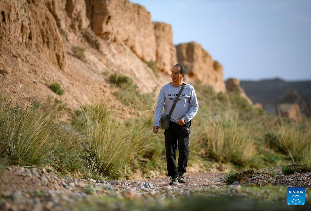 Dong Haining patrols a section of the Great Wall built in Ming Dynasty (1368-1644) in north China, Aug. 20, 2023. Dong Haining, 42, has been a protector of the Great Wall since 2016. Over the years, he has patrolled a section of the Great Wall located in the Helan Mountains while clearing rubbish and weeds, and reminding tourists to preserve the wall. (Xinhua/Feng Kaihua)