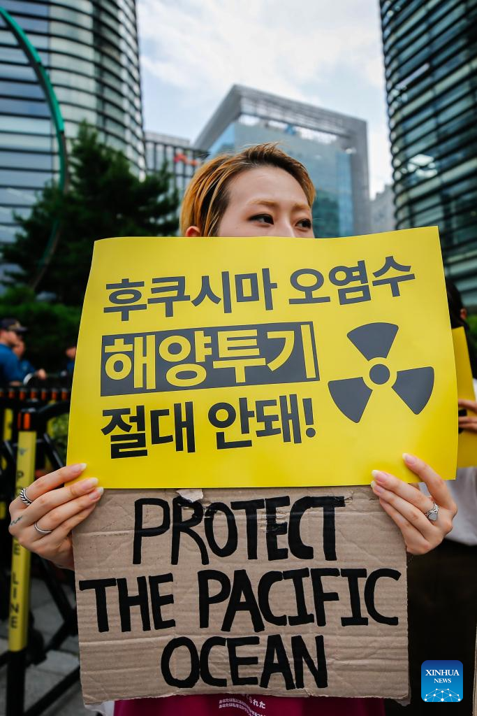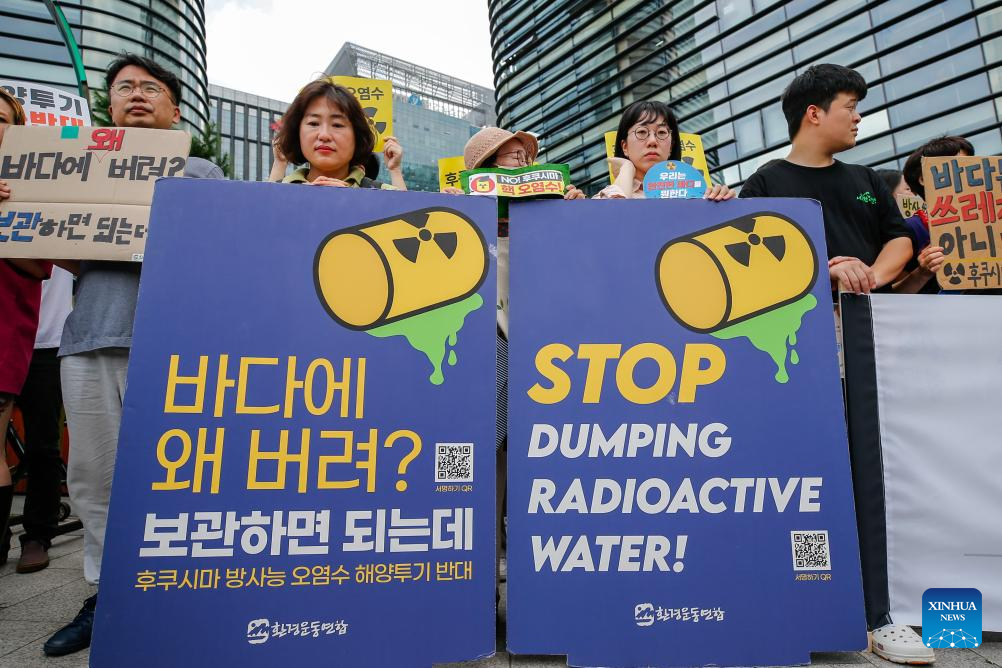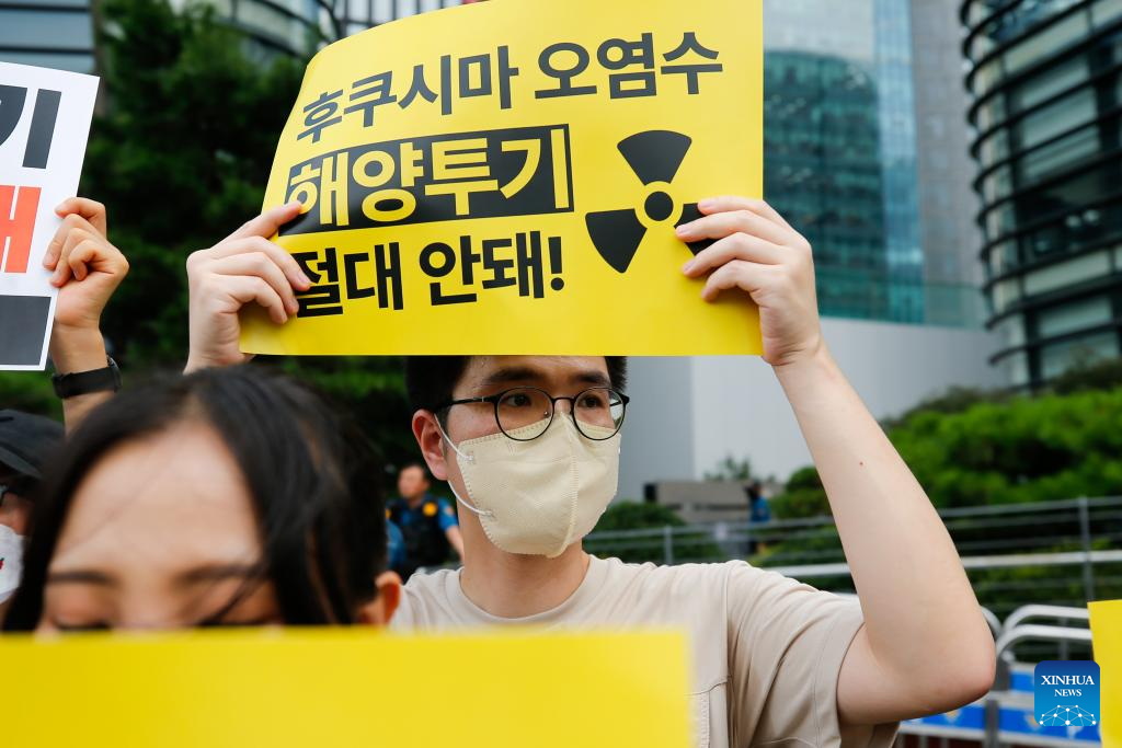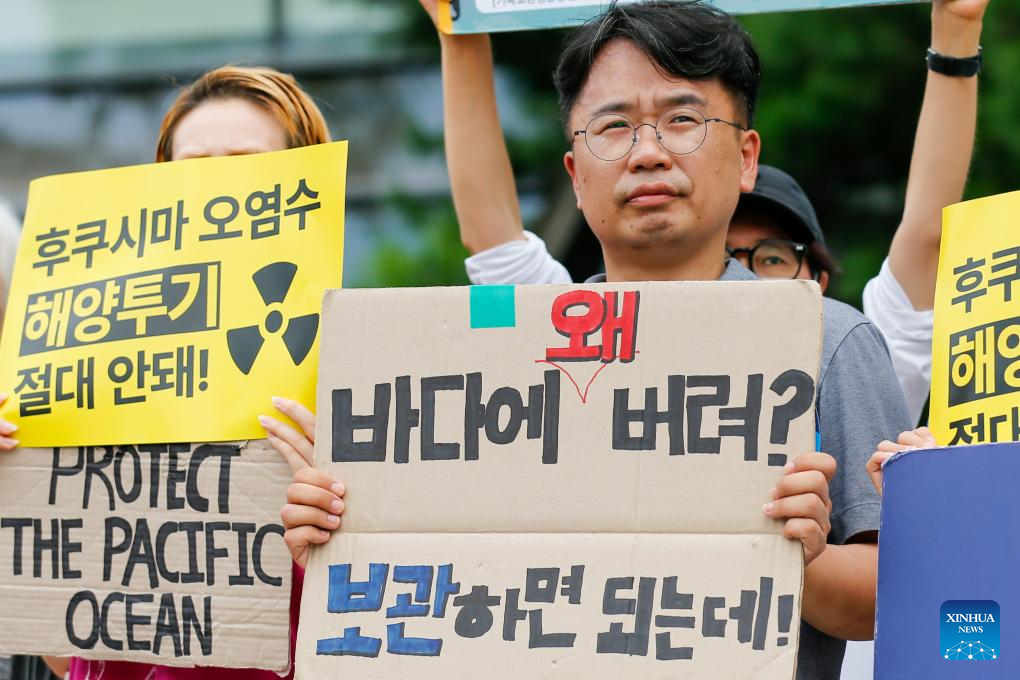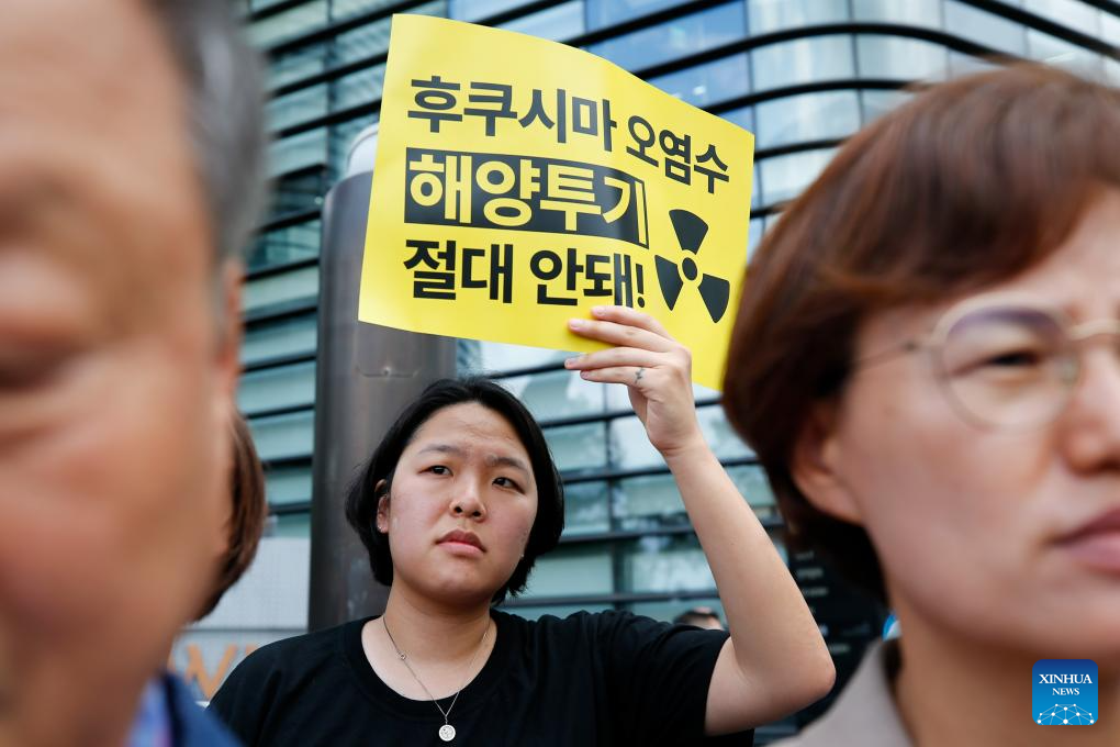 SEOUL, Aug. 22 (Xinhua) -- South Korean activists and politicians on Tuesday condemned Japan's decision to start dumping nuclear-contaminated wastewater from the crippled Fukushima Daiichi nuclear power plant into the ocean later this week.