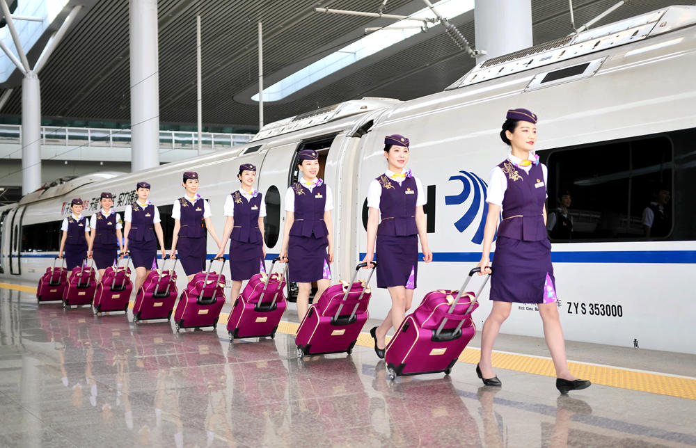 Train attendants from the China Railway Shanghai Group Co., Ltd. attend a training course on professional appearance. (Photo courtesy of the convergence media center of China Railway Shanghai Group Co., Ltd.)