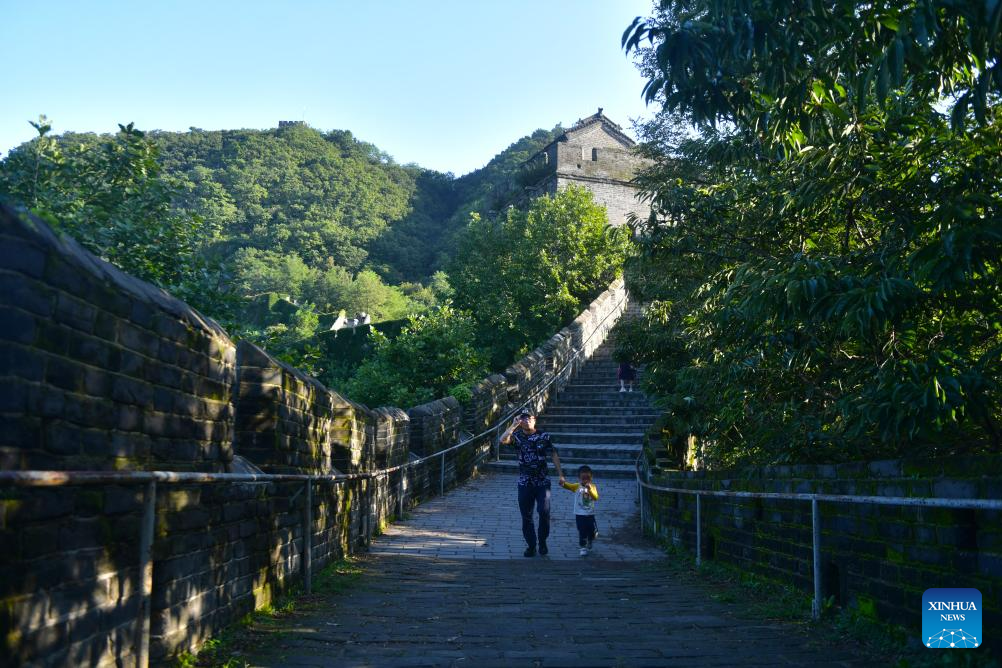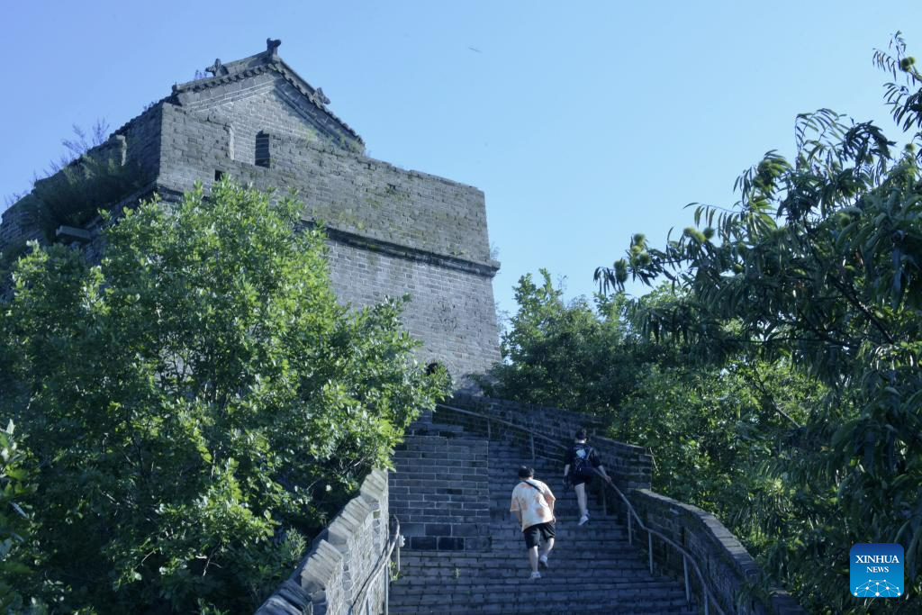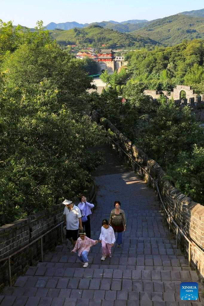 People visit the Hushan section of the Great Wall in Dandong City, northeast China's Liaoning Province, Aug. 23, 2023. (Xinhua/Zhang Xinjing)