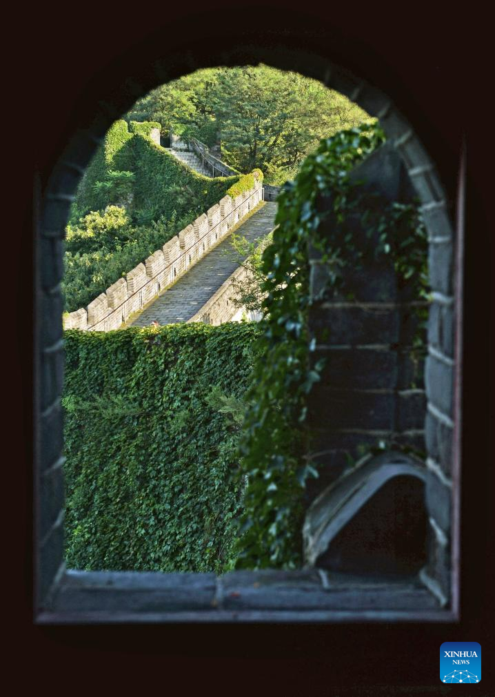 This photo taken on Aug. 23, 2023 shows the scenery of Hushan section of the Great Wall in Dandong City, northeast China's Liaoning Province. (Xinhua/Zhang Xinjing)