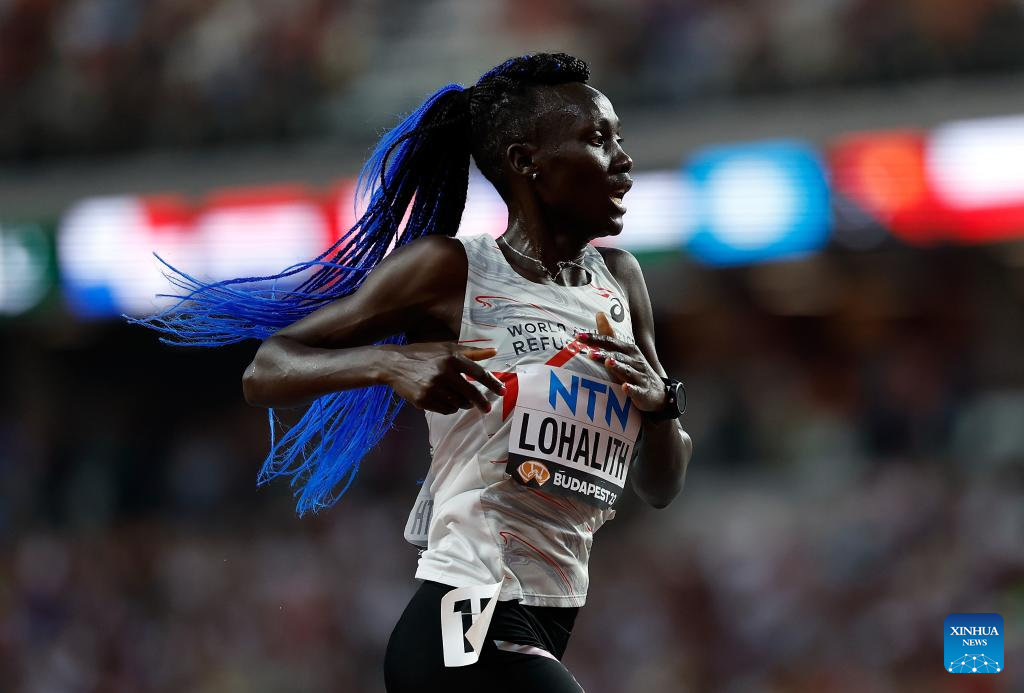 Anjelina Nadai Lohalith of Athlete Refugee Team (ART) competes during the Women's 5000m Heat of the World Athletics Championships Budapest 2023 in Budapest, Hungary, Aug. 23, 2023. (Xinhua/Wang Lili)