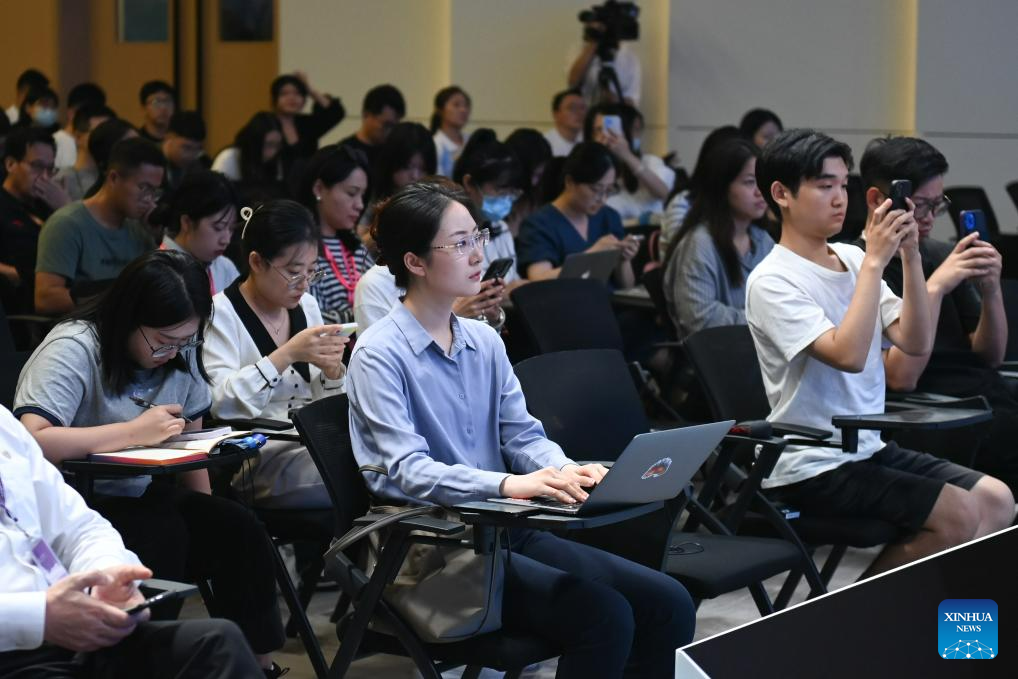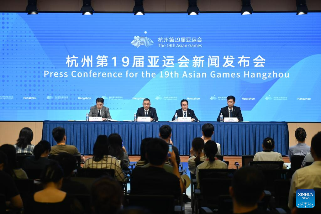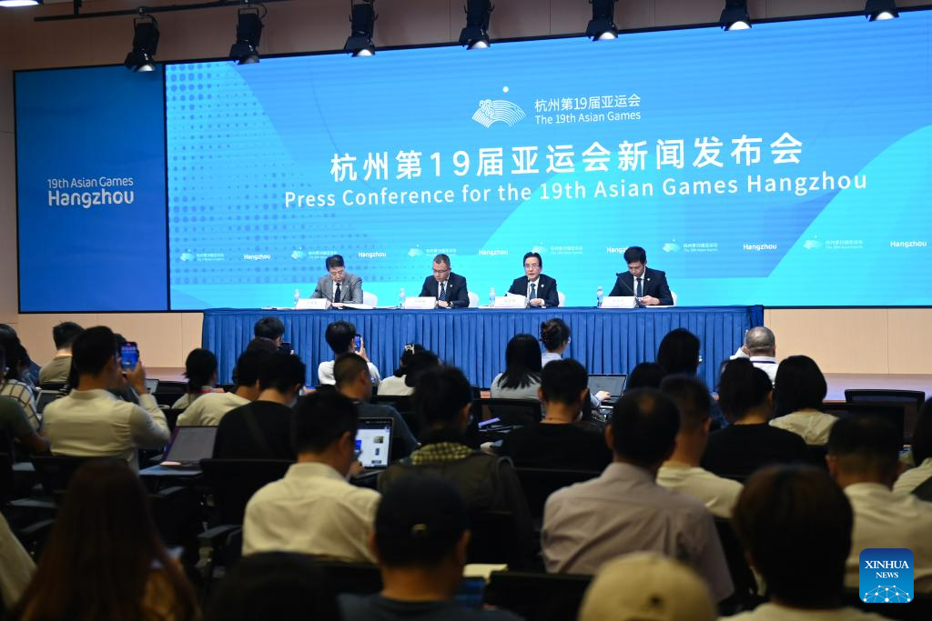 Photo taken on Aug. 24, 2023 shows the press conference for the 19th Asian Games Hangzhou in Hangzhou, capital of east China's Zhejiang Province. (Xinhua/Huang Zongzhi)