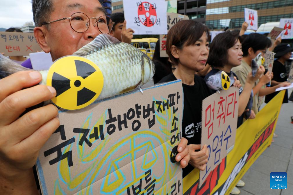 SEOUL, Aug. 24 (Xinhua) -- Lawmakers of the South Korean main opposition Democratic Party on Thursday protested against Japan's discharge of nuclear-contaminated wastewater into the ocean, pushing for bills to legislate the right to indemnity claims against the Japanese government.