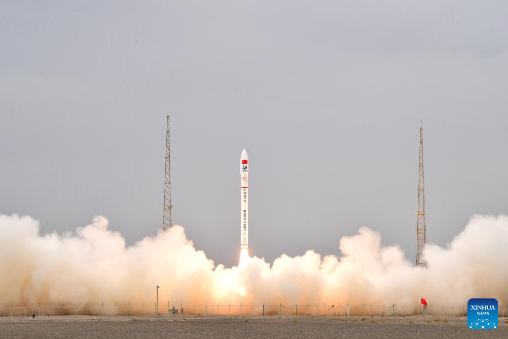 The commercial rocket blasted off at 12:59 p.m. (Beijing Time) from the launch site, carrying the Jilin-1 Kuanfu 02A satellite.