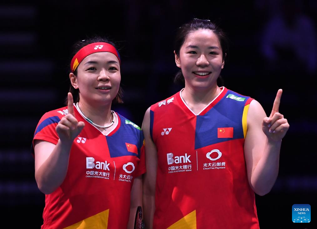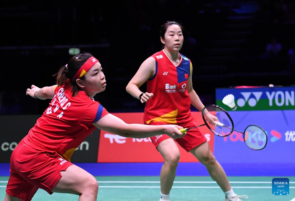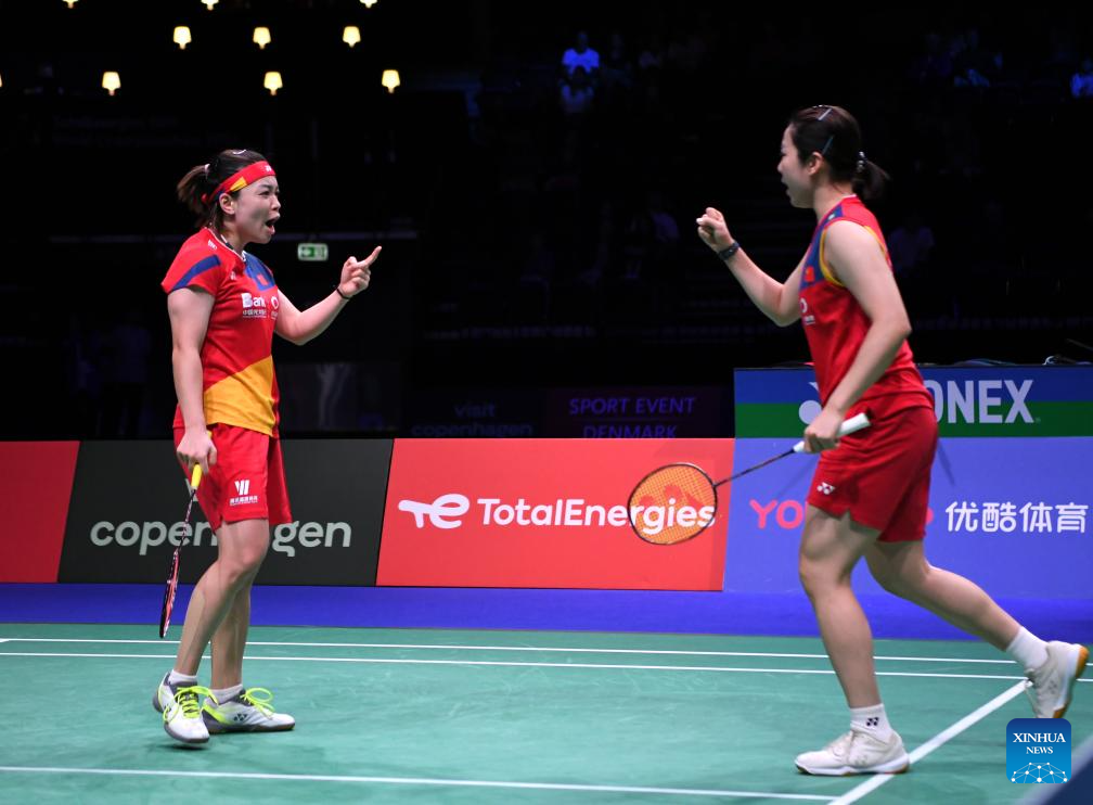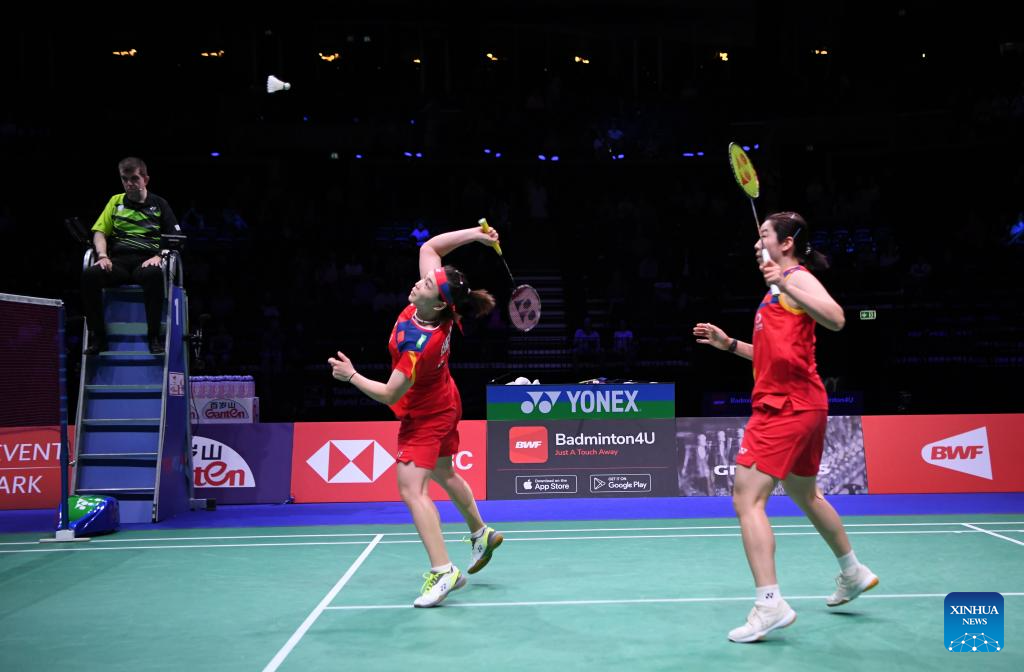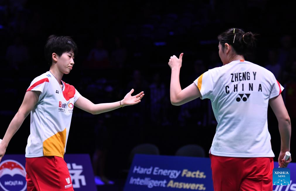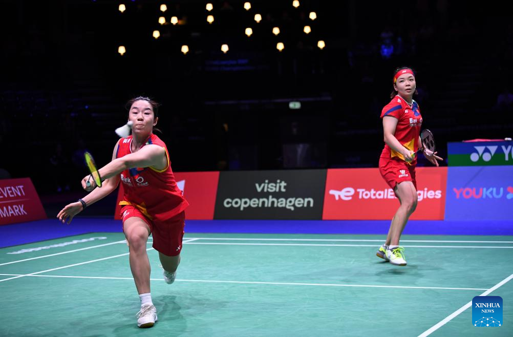 COPENHAGEN, Aug. 26 (Xinhua) -- Defending champions Chen Qingchen and Jia Yifan defeated their Chinese compatriots Zhang Shuxian and Zheng Yu 21-14, 21-16 here on Saturday and are set to make their fourth appearance in the women's doubles final of the BWF World Championships.