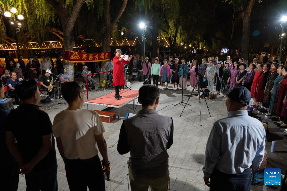 Members of a chorus sing at a park along the Songhua River in Harbin, northeast China's Heilongjiang Province, Aug. 27, 2023. (Xinhua/Xie Jianfei)