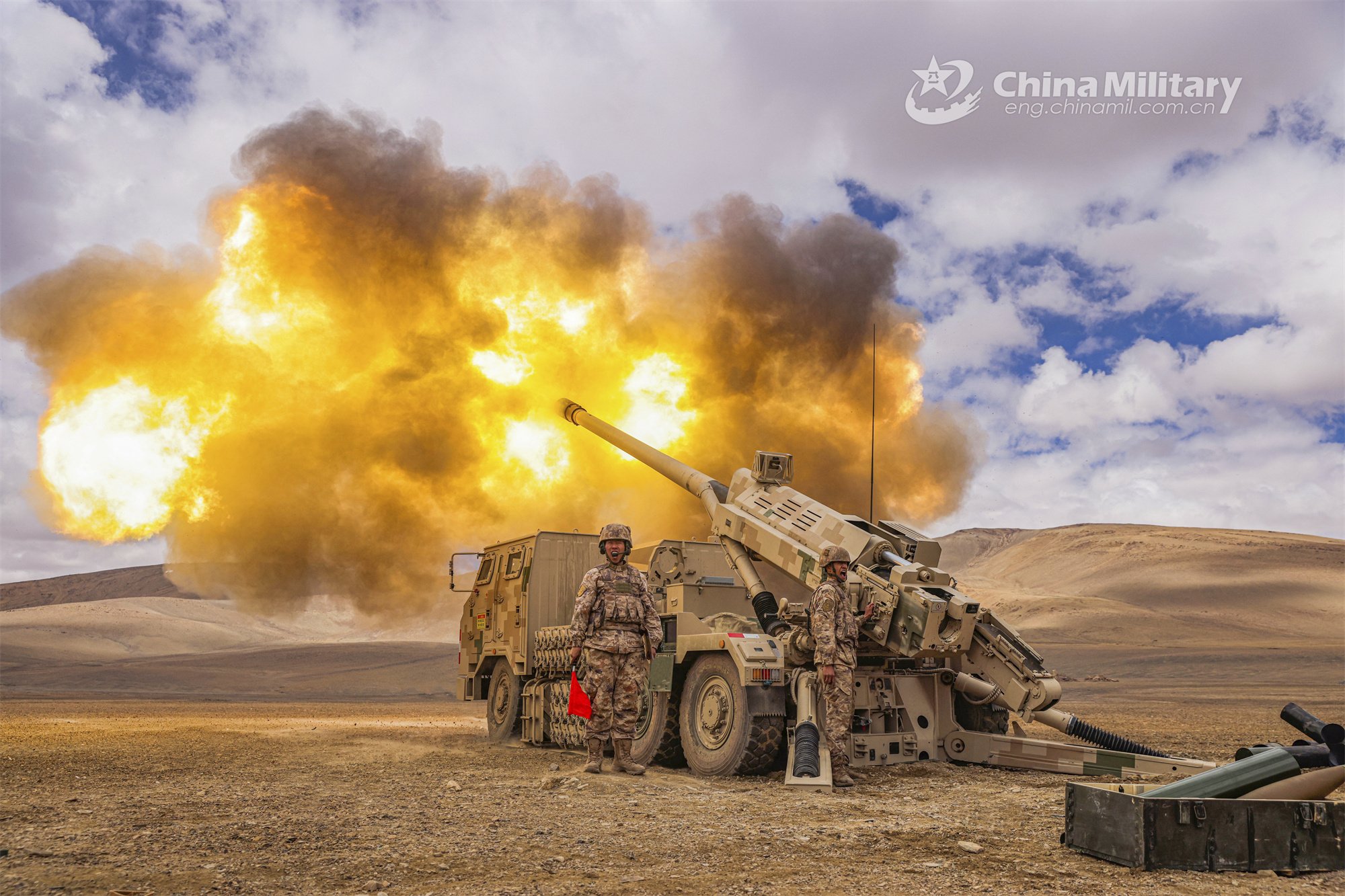 A self-propelled howitzer attached to an army regiment fires at simulated targets during a live-fire exercise on August 12, 2023. (eng.chinamil.com.cn/Photo by Li Longfei)