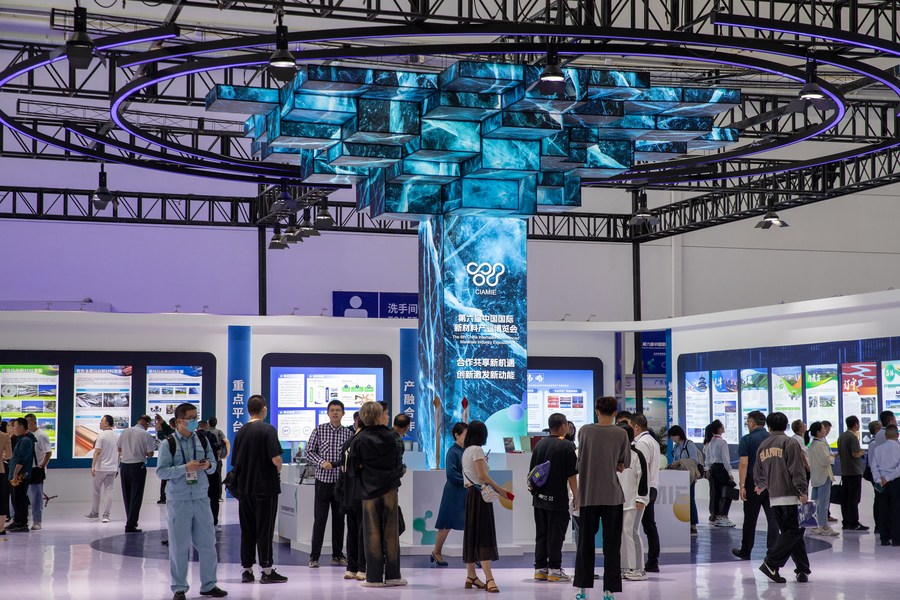 People visit the 6th China International Advanced Materials Industry Exposition in Harbin, northeast China's Heilongjiang Province, Aug. 29, 2023. (Xinhua/Zhang Tao)