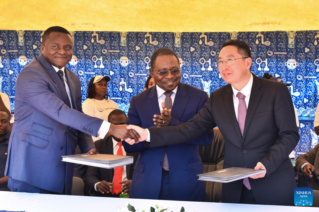 This photo taken on Aug. 28, 2023 shows a scene of the signing ceremony of a Chinese-aided water project in Garoua-Boulai, Cameroon. (Photo by Kepseu/Xinhua)
