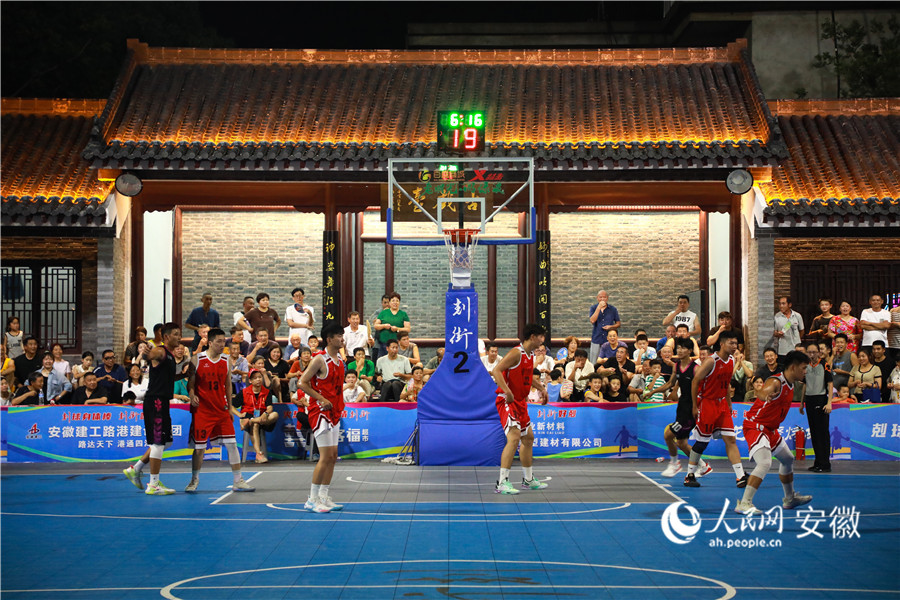 A basketball match is in full swing in Kejie street, Mingguang city, east China's Anhui Province at night. (People's Daily Online/Tao Tao)