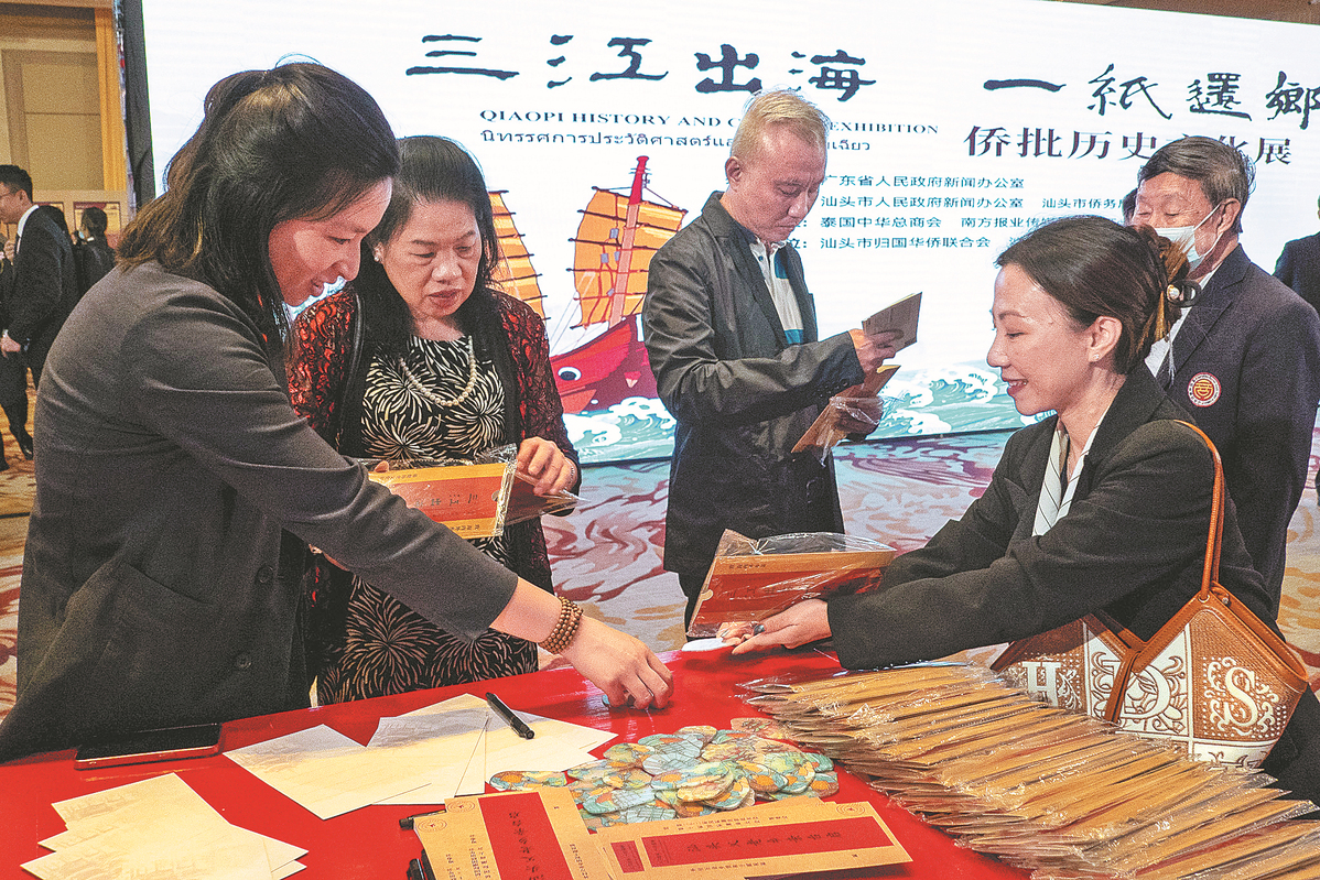 People visit an exhibition showcasing the history and culture of qiaopi, a form of mail mixing correspondence and remittance documents from overseas Chinese, in Bangkok, Thailand, on July 9.Thailand is one of the Southeast Asian countries with the largest population of overseas Chinese from Guangdong and Fujian provinces in southern China. LIN HAO/XINHUA