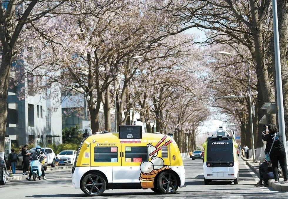 Unmanned delivery vehicles run in Beijing E-town. (Photo/He Guanxin)