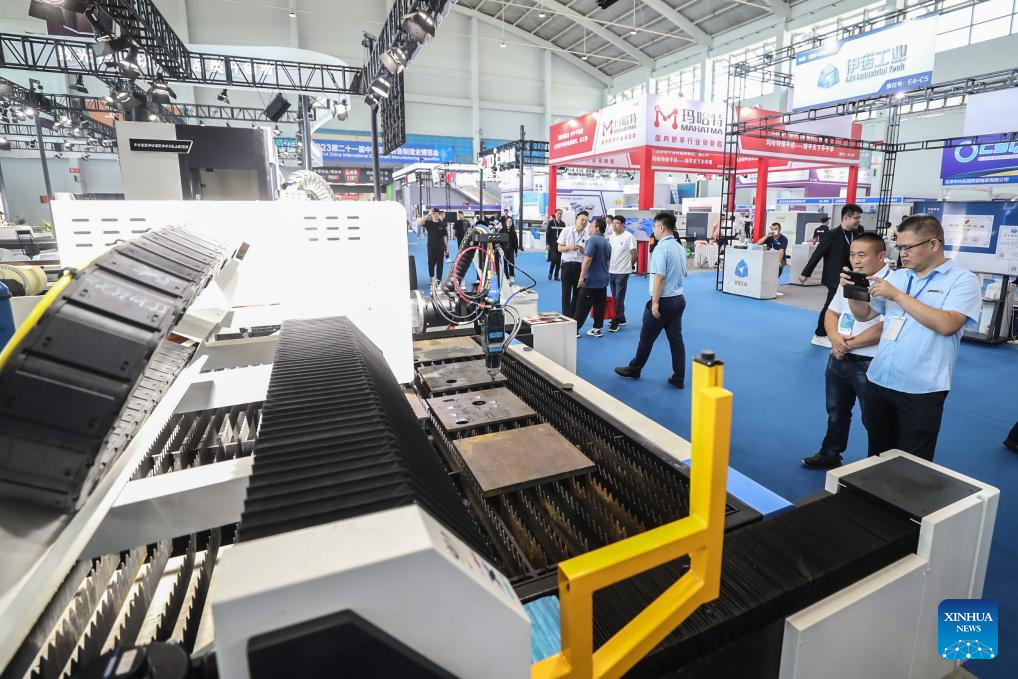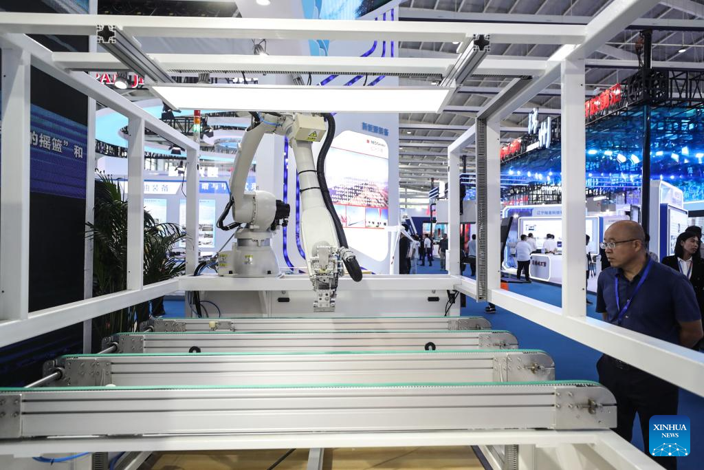 People visit the 21st China International Equipment Manufacturing Exposition in Shenyang, northeast China's Liaoning Province, Sept. 1, 2023. The expo kicked off on Friday at Shenyang International Exhibition Center. Over a thousand enterprises in intelligent manufacturing area attended the expo. (Xinhua/Pan Yulong)