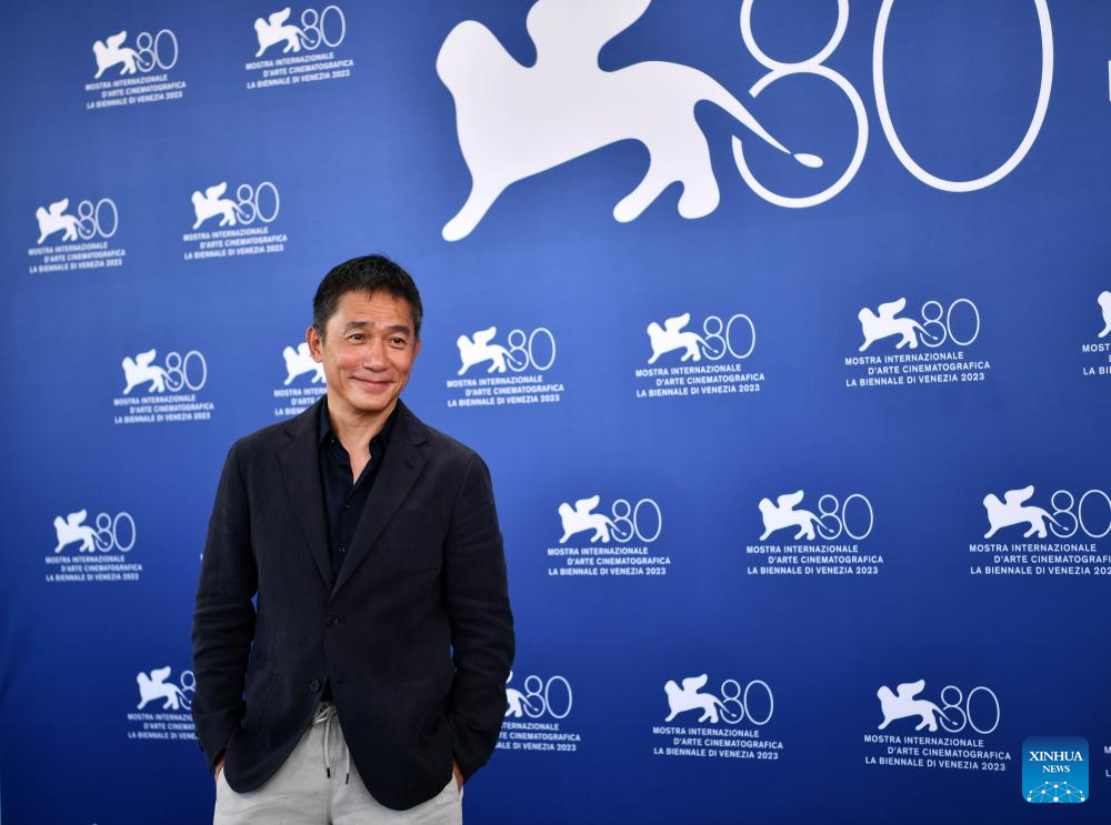 Actor Tony Leung Chiu-Wai attends a photocall during the 80th Venice International Film Festival in Venice, Italy, on Sept. 2, 2023. Tony Leung Chiu-Wai of Hong Kong, China was presented with the Golden Lion for Lifetime Achievement during the event on Saturday. (Xinhua/Jin Mamengni)
