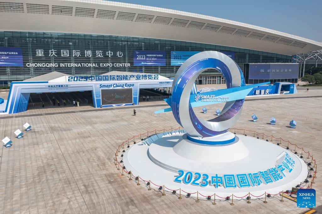 Guests visit the venue for 2023 Smart China Expo in southwest China's Chongqing, Sept. 3, 2023. The 2023 Smart China Expo will be held at Chongqing International Expo Center from Sept. 4 to 6. (Xinhua/Wang Quanchao)