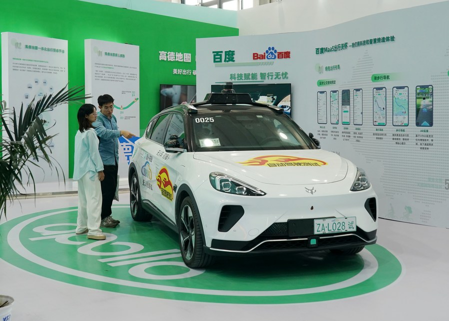 This photo shows a self-driving vehicle on display during the 2023 China International Fair for Trade in Services (CIFTIS) at Shougang Park in Beijing, capital of China, Sept. 3, 2023. (Xinhua/Zhang Chenlin)
