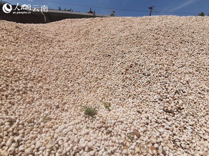 Photo shows a large mound of river snail shells found at the ruins of a settlement site named Gucheng Village site, which is located beside Dianchi Lake in Kunming, southwest China's Yunnan Province. (People's Daily Online/Liu Yi)