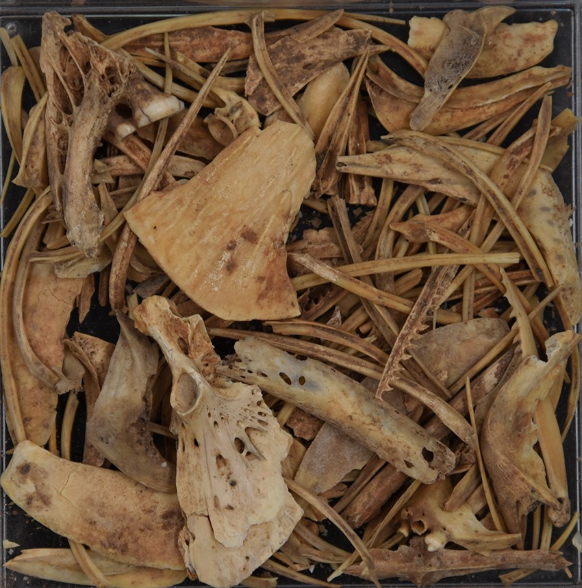 Photo shows fish bones found at the ruins of a settlement site named Gucheng Village site, which is located beside Dianchi Lake in Kunming, southwest China's Yunnan Province. (Photo courtesy of Yunnan Institute of Cultural Relics and Archaeology)