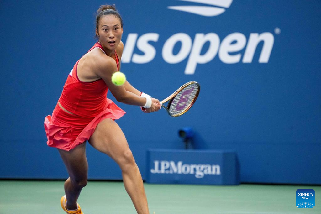 NEW YORK, Sept. 4 (Xinhua) -- Chinese sensation Zheng Qinwen powered into the quarterfinals of the US Open on Monday with a straight-set win over Ons Jabeur from Tunisia 6-2 and 6-4.
