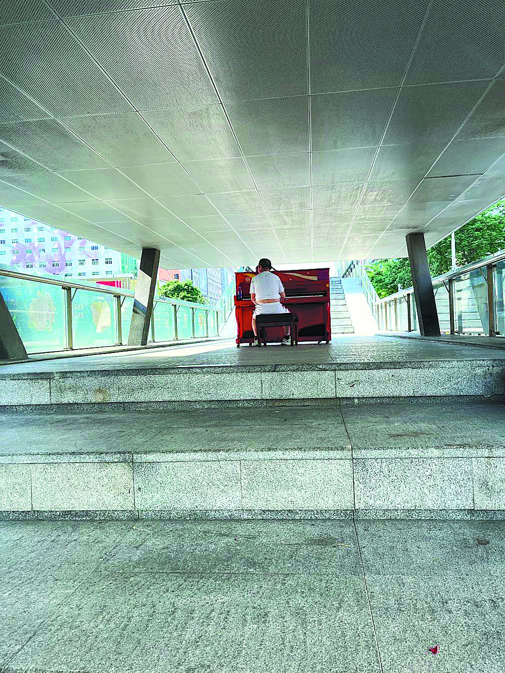 Piano is played on a street in Huaqiangbei, Shenzhen, Guangdong province. YI YANG/FOR CHINA DAILY