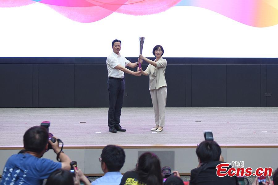 The torch for the 19th Asian Games makes its debut at a delivery ceremony in Ningbo, Zhejiang Province, Sept 4, 2023. (Photo: China News Service/Wang Gang)