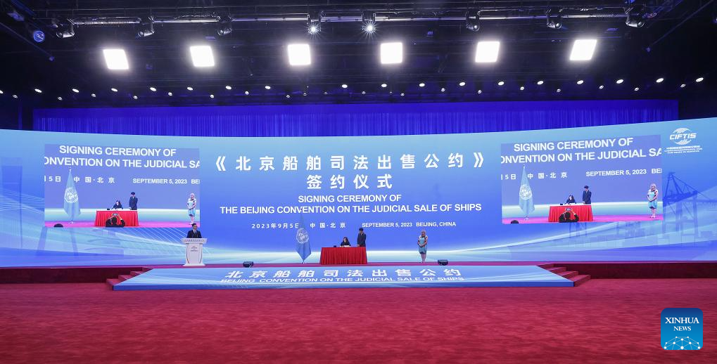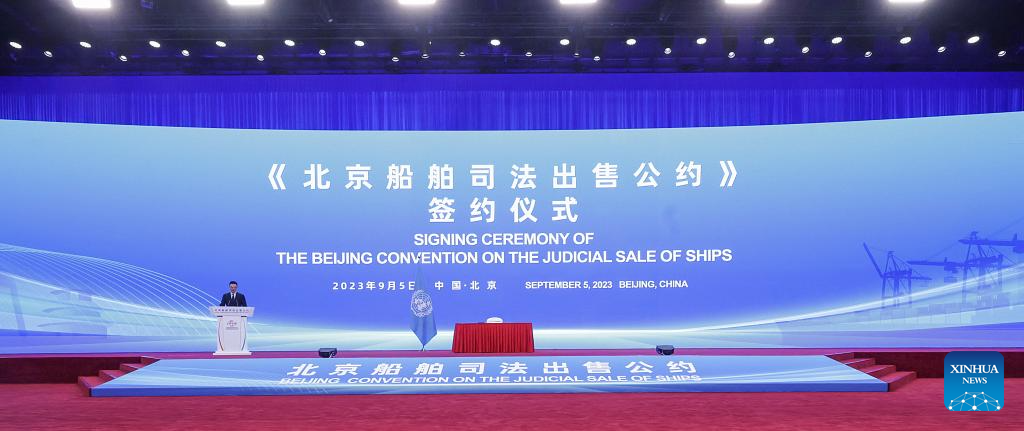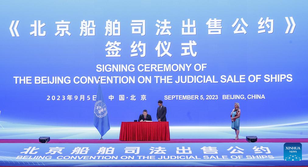BEIJING, Sept. 5 (Xinhua) -- A signing ceremony for the United Nations (UN) Convention on the International Effects of Judicial Sales of Ships, also known as the Beijing Convention on the Judicial Sale of Ships, took place in Beijing on Tuesday.