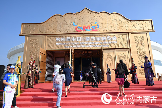 Attendees enter the venue for the opening ceremony of the fourth China-Mongolia Expo in Hohhot, capital of north China's Inner Mongolia Autonomous Region. (People's Daily Online/Bai Jianping)