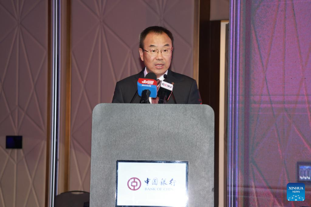 Liu Jin, president of the Bank of China (BOC), addresses the inauguration ceremony of the Riyadh branch of the BOC in Riyadh, Saudi Arabia, Sept. 5, 2023. The BOC opened its branch in Saudi Arabia's capital Riyadh on Tuesday to expand its financial service network in the Arab country. (Xinhua/Wang Haizhou)