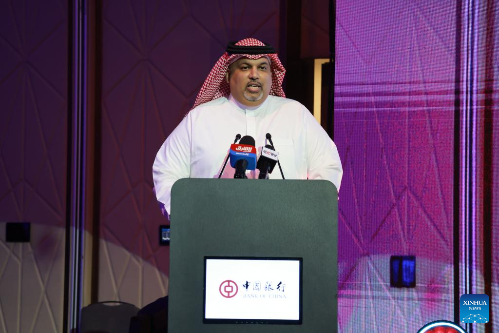 Saudi Deputy Minister of Investment Saleh Ali Khabti addresses the inauguration ceremony of the Riyadh branch of the Bank of China (BOC) in Riyadh, Saudi Arabia, Sept. 5, 2023. The BOC opened its branch in Saudi Arabia's capital Riyadh on Tuesday to expand its financial service network in the Arab country. (Xinhua/Wang Haizhou)